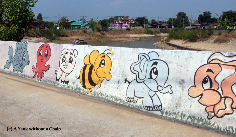 Just outside the Sila Resort, the hostel I stayed at in New Sukhothai, there was a wall about 1km long that was covered in some of the cutest street art I’ve ever seen! There were illustrations of baby animals, local dress, and famous characters like Psy. I took some photos of my favorite bits.